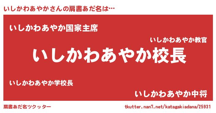 | 女子向けラノベタイトル風あだ名 | 『いしかわあやかの契約王妃』 |