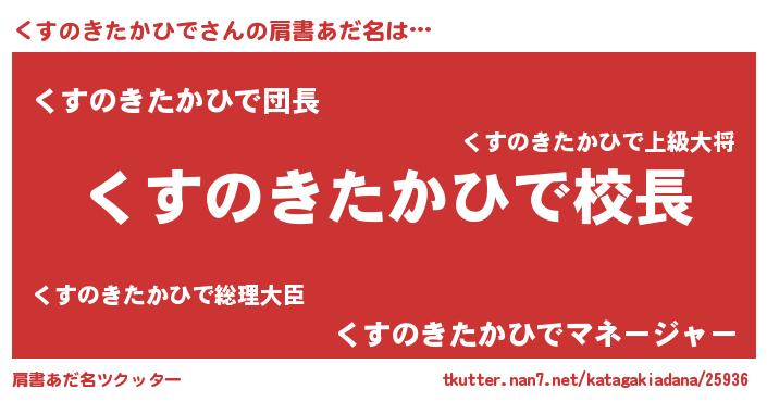 | ヘコむあだ名 | 『くすのきたかひで(爆)』『くすお』 |