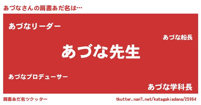 | 意味不明あだ名 | 『永久保存あづな』『あづなフォーエバー』 |