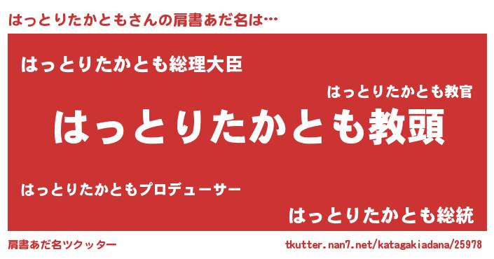 | 意味不明あだ名 | 『永久保存はっとりたかとも』 |