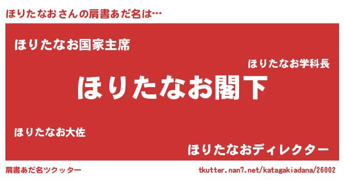 | 意味不明あだ名 | 『自称ほりたなお』『永久保存ほりたなお』 |