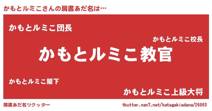 | 男性向けラノベタイトル風あだ名 | 『この素晴らしい世界にかもとルミこを!』 |