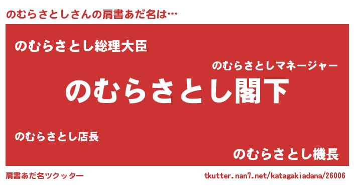 | 意味不明あだ名 | 『自称のむらさとし』 |