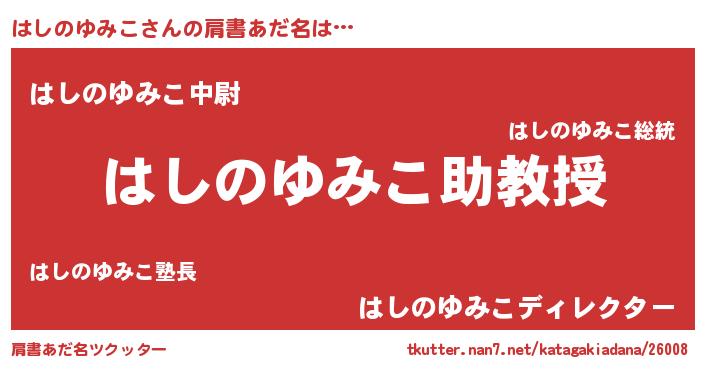 | 男性向けラノベタイトル風あだ名 | 『おまえをオタクにしてやるから、俺をはしのゆみこにしてくれ! 』 |