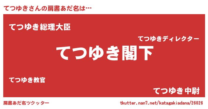 | 男性向けラノベタイトル風あだ名 | 『Re:てつゆきから始める異世界生活』 |