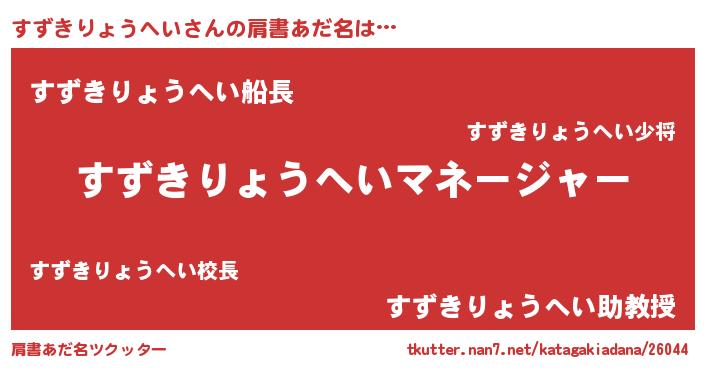 | 男性向けラノベタイトル風あだ名 | 『すずきりょうへいに滅ぼされるだけの簡単なお仕事です』 |