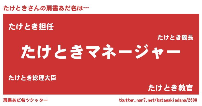 | 意味不明あだ名 | 『永久保存たけとき』『ペロリンたけとき』 |