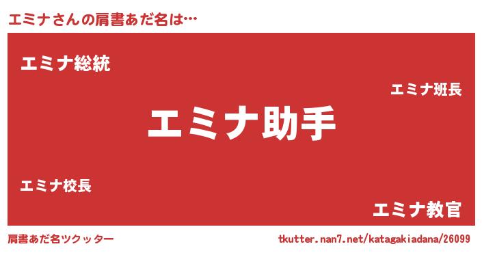 | ヒーロー風カッコイイあだ名 | 『天空の使者エミナ』『最強戦士エミナ』 |