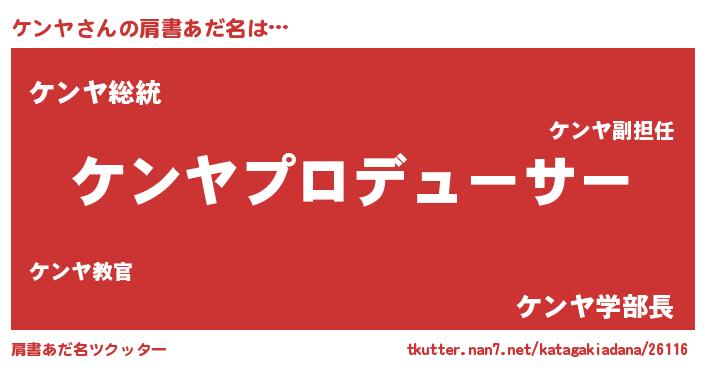 | ヒーロー風カッコイイあだ名 | 『究極戦士ケンヤ』『慈愛の使者ケンヤ』 |