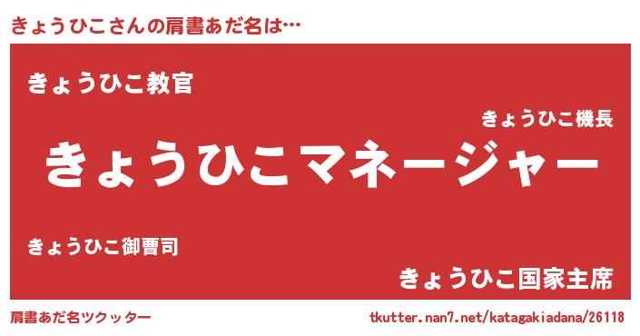 | 意味不明あだ名 | 『住所不定無職きょうひこ(8歳)』 |