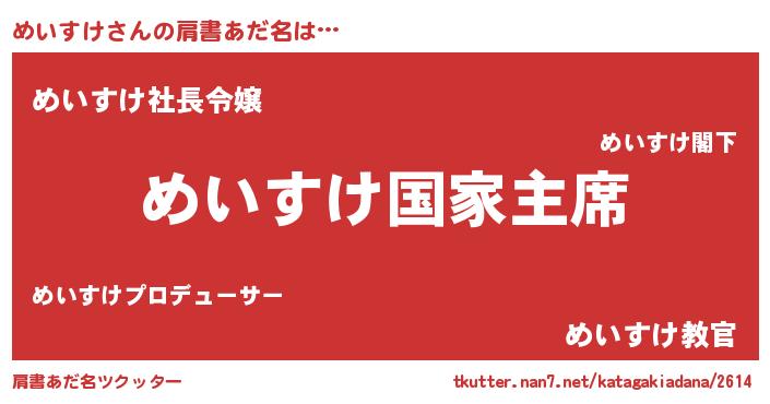 | 意味不明あだ名 | 『めいすけフォーエバー』『自称めいすけ』 |