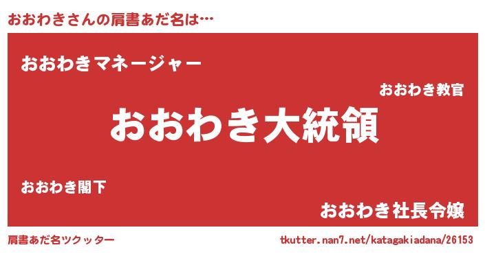 | 男性向けラノベタイトル風あだ名 | 『やはりおおわきの青春ラブコメはまちがっている 』 |
