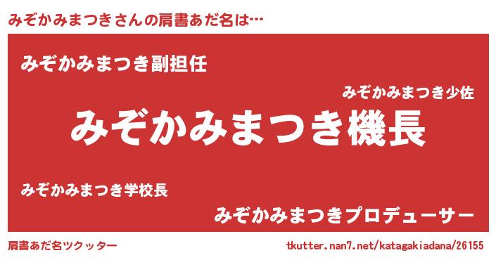 | 可愛いあだ名 | 『みーみん』『みぞかみまつきママ』 |