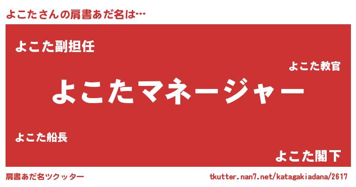 | ヘコむあだ名 | 『よこた(小並感)』『よこぷりん』 |