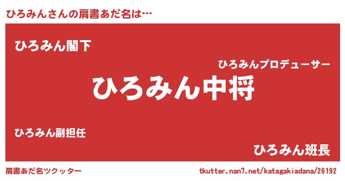 | 男性向けラノベタイトル風あだ名 | 『転生したらひろみんだった件』 |