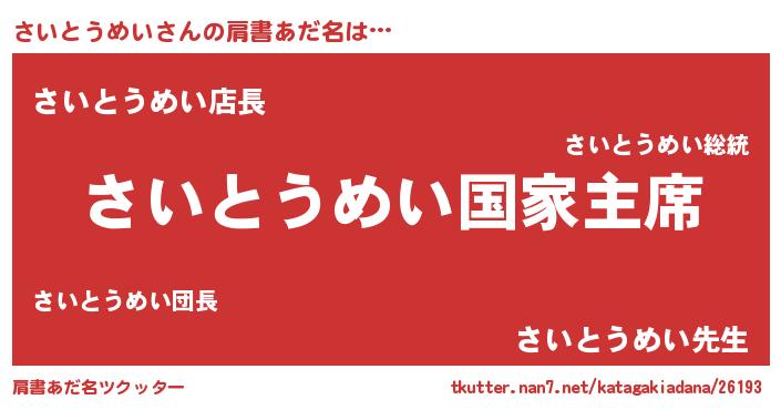 | 欧米人風あだ名 | 『さいとうめいクリステル』 |