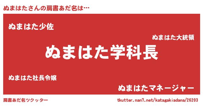 | ヒーロー風カッコイイあだ名 | 『正義の使者ぬまはた』『銀牙騎士ヌマ』 |