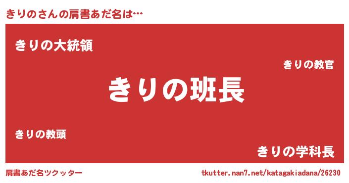 | 意味不明あだ名 | 『とにかく怪しいきりの』 |