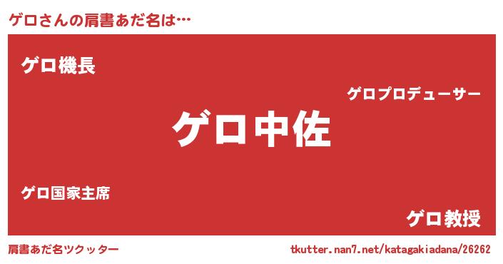 | 男性向けラノベタイトル風あだ名 | 『ゲロスレイヤー』『緋弾のゲロ』 |