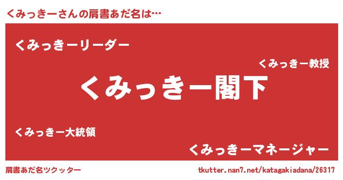 | 男性向けラノベタイトル風あだ名 | 『魔法科高校のくみっきー』 |