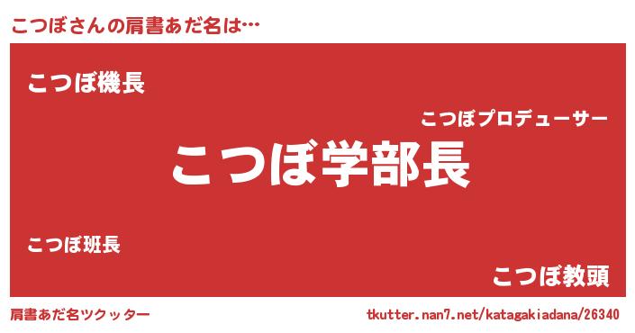 | 女子向けラノベタイトル風あだ名 | 『死神こつぼの再婚』『こつぼ様がみてる』 |