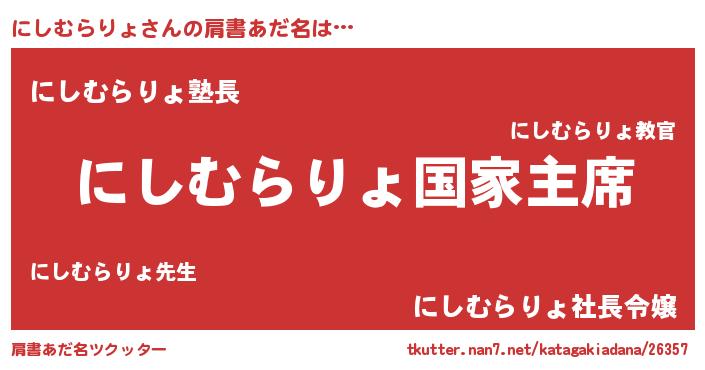 | ファンタジー風あだ名 | 『エターナルニシムラリョー』 |