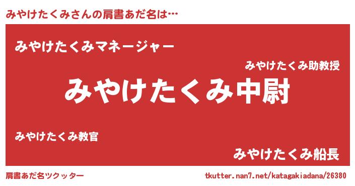 | ヒーロー風カッコイイあだ名 | 『愛の使者みやけたくみ』『仮面ミヤダー』 |
