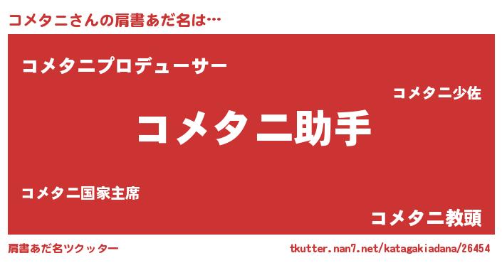 | 女子向けラノベタイトル風あだ名 | 『コメタニ恋絵巻』『コメタニ伯爵の花嫁』 |