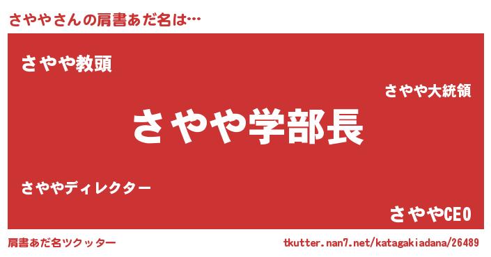 | ヒーロー風カッコイイあだ名 | 『正義の使者さやや』『ネオサヤヤ』 |