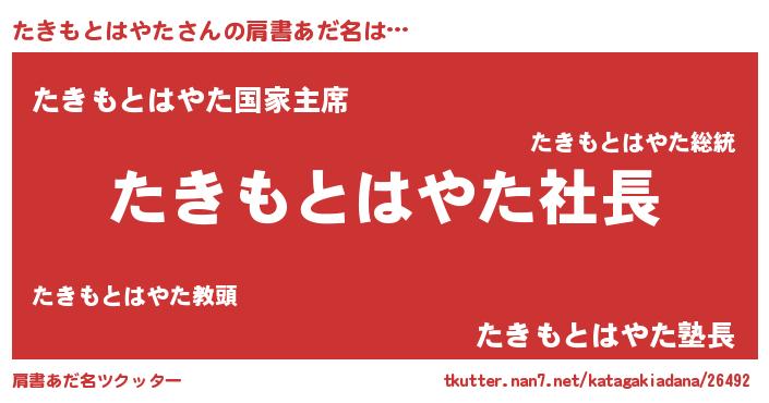 | 男性向けラノベタイトル風あだ名 | 『たきもとはやたの憂鬱』 |