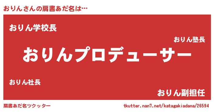 | ヒーロー風カッコイイあだ名 | 『慈愛の使者おりん』『ネオオリン』 |