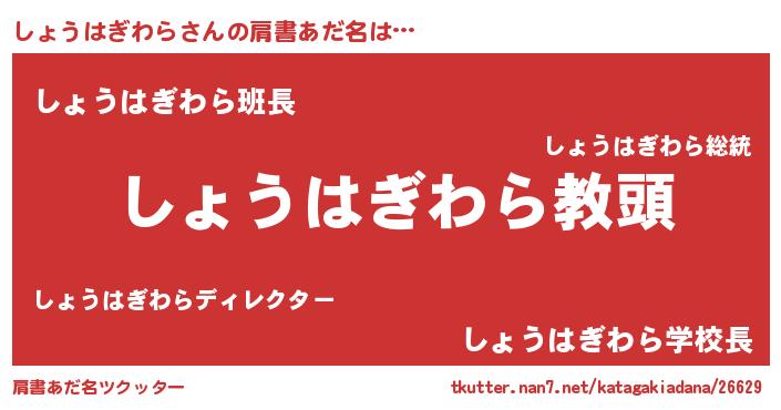 | ヘコむあだ名 | 『しょうはぎわら(笑)』『しょ太郎』 |