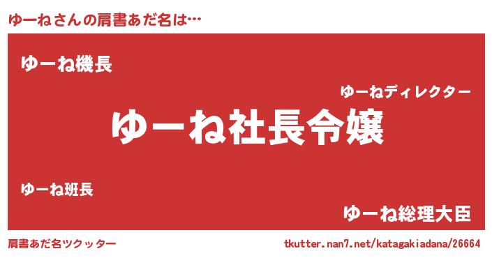| 2回繰り返すあだ名 | 『ゆーゆー』『とげとげ』『ゆゆーー』 |