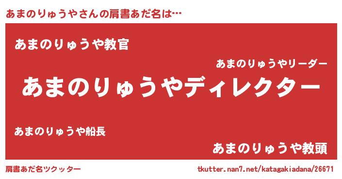 | 男性向けラノベタイトル風あだ名 | 『あまのりゅうやに滅ぼされるだけの簡単なお仕事です』 |