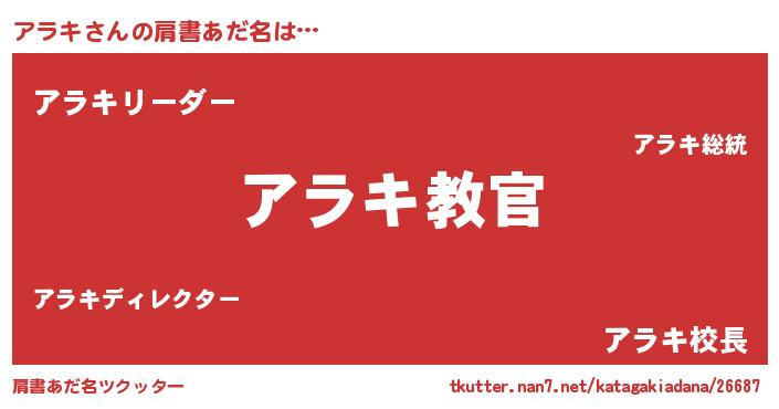 | 欧米人風あだ名 | 『ダレノガレアラキ』『ウサインアラキ』 |