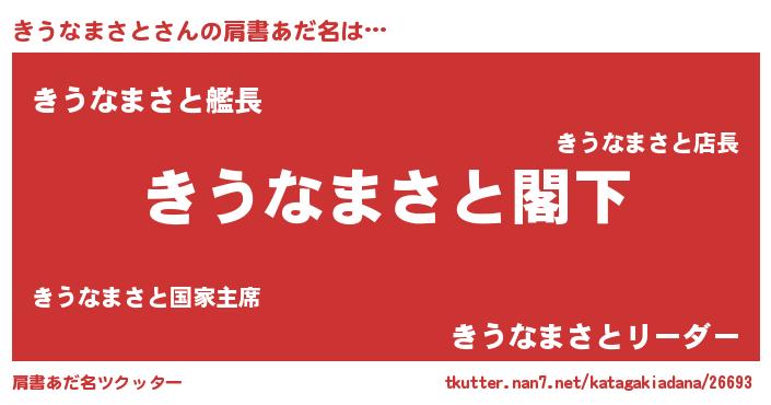| 男性向けラノベタイトル風あだ名 | 『Re:きうなまさとから始める異世界生活』 |