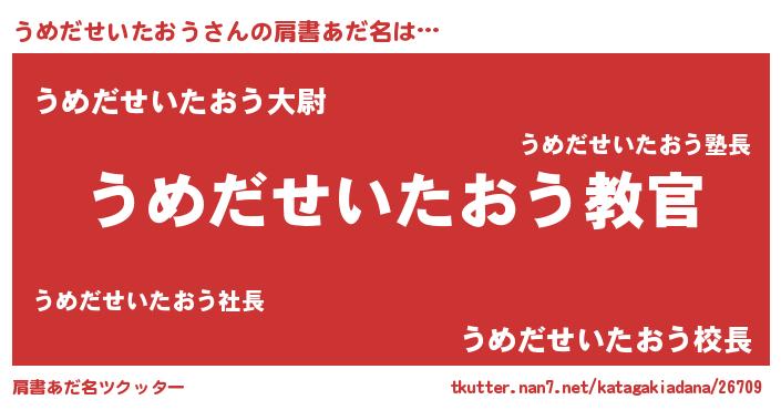 | 意味不明あだ名 | 『住所不定無職うめだせいたおう(84歳)』 |