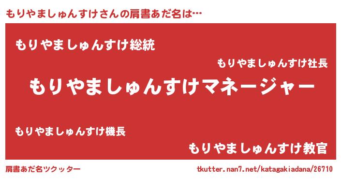 | 男性向けラノベタイトル風あだ名 | 『もりやましゅんすけに滅ぼされるだけの簡単なお仕事です』 |