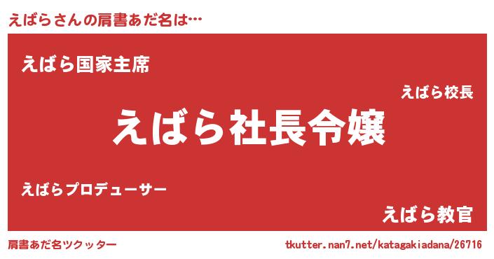 | ヘコむあだ名 | 『えばもー』『レバニラ』『えばっ子』 |