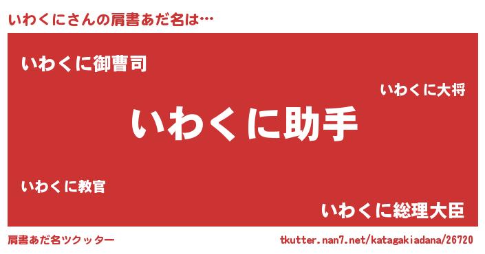 | 男性向けラノベタイトル風あだ名 | 『おまえをオタクにしてやるから、俺をいわくににしてくれ! 』 |