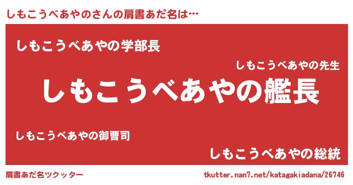 | 男性向けラノベタイトル風あだ名 | 『緋弾のシモコウベアヤノ』 |