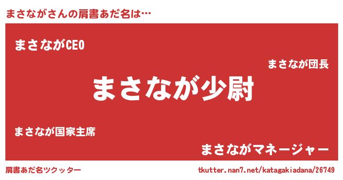 | 男性向けラノベタイトル風あだ名 | 『マサナガスレイヤー』『まさながの憂鬱』 |