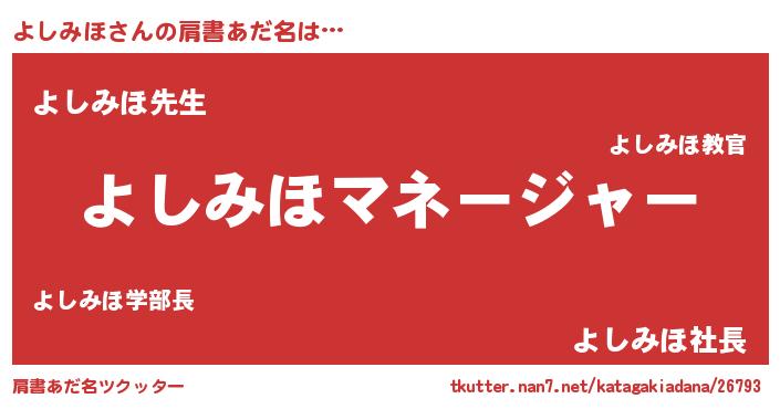 | ヘコむあだ名 | 『よしみほ(小並感)』『よしにー』 |