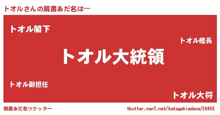 | 欧米人風あだ名 | 『トオルクリステル』『トリンドルトオル』 |