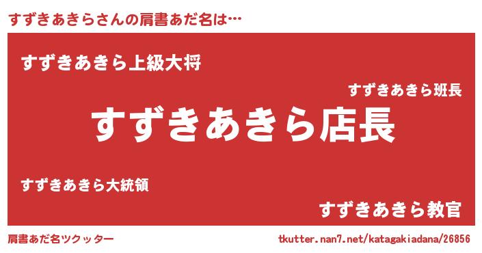 | ヒーロー風カッコイイあだ名 | 『スーパースズキアキラ』『仮面スズダー』 |