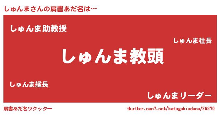 | 男性向けラノベタイトル風あだ名 | 『誰もが恐れるあのしゅんまが、ぼくの専属メイドになるようです。』 |