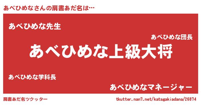 | 男性向けラノベタイトル風あだ名 | 『転生したらあべひめなだった件』 |