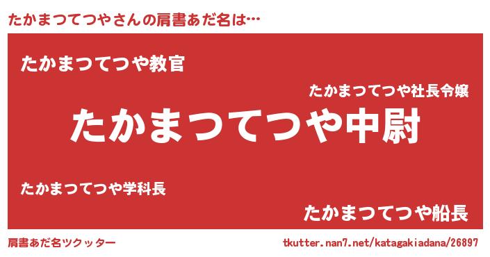 | 男性向けラノベタイトル風あだ名 | 『タカマツテツヤスレイヤー』 |