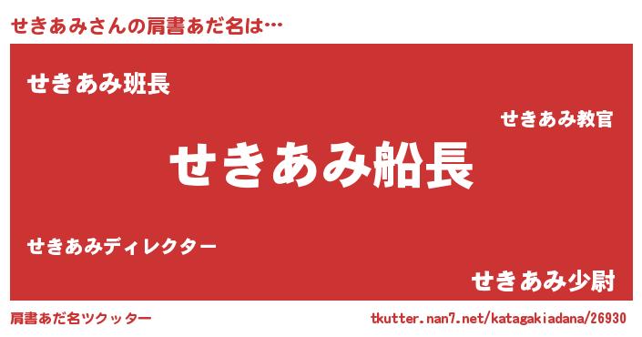 | 男性向けラノベタイトル風あだ名 | 『緋弾のセキアミ』『魔弾の王とせきあみ』 |