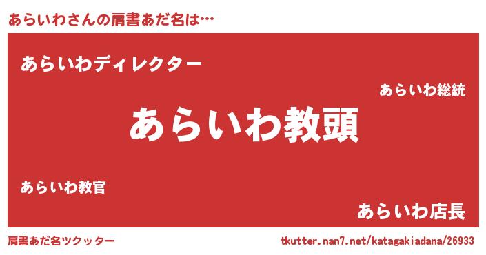 | 意味不明あだ名 | 『永久保存あらいわ』『ペロリンあらいわ』 |
